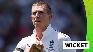 El jugador de 27 años modificó su técnica para el final, desplazando la guardia hacia los tocones. Estaba fuera por LBW cuando cruzó una bola recta del australiano Michael Neser.